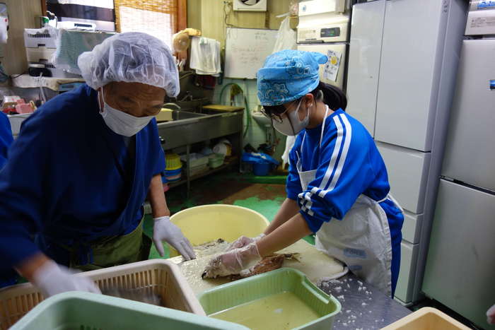 6年生は、内外海地区で作るへしこの味や作り方などを他の地域のへしこと比較して、その独自性や特徴について考えた。そして、その考察を自分たちで資料にまとめ、修学旅行で販売したり、PRしたりした。また、鯖街道ミュージアムの見学や鯖街道の踏破体験を通して、鯖街道の歴史や小浜と京都とのつながりについても考えさせた。最後には、なれずし作りを実施し、へしことのつながりについても考えさせた。