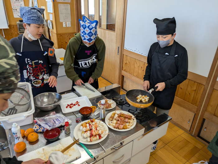 地元のボランティアの方々の協力のもと、サバの味噌煮を作った。4~5人グループで1匹のサバを使い、三枚おろしにする経験をした。そのサバを使ってみそ煮を作った。子供たちは、生魚を調理する経験がほとんどなく、この場で初めて生魚を切る経験をする子も多かった。地域のボランティアの方のおかげで貴重な体験ができた上に、交流の機会も生まれ、良い活動となった。とてもおいしいサバの味噌煮が出来上がった。