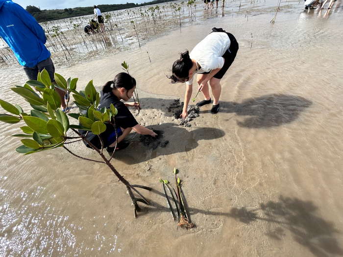 (2)植樹体験 ※北陽オリジナル活動【大阪で育てたマングローブを植樹】