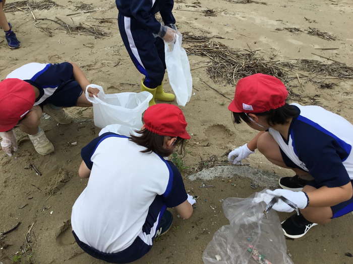 海浜植物の観察のため校区の海岸を訪れたことをきっかけに、海洋ごみや海辺に生息する生き物について課題を発見し、その解決に向けて主体的に活動する。