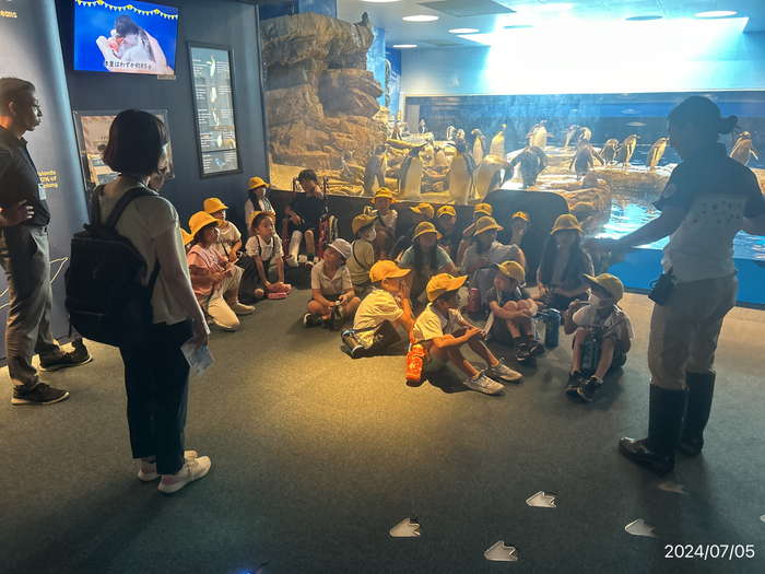 2年生は「ペンギン」の学習。飼育員の井上さんから、ペンギンを間近で見ながらペンギンの話を聞きました。ひなも見ることができた。一日の生活や子育ての様子、えさの内容や回数、泳ぎ方などの質問についてわかりやすく教えていただいた。水槽の中で飛んでいるように泳いでいる姿を見ることができた。