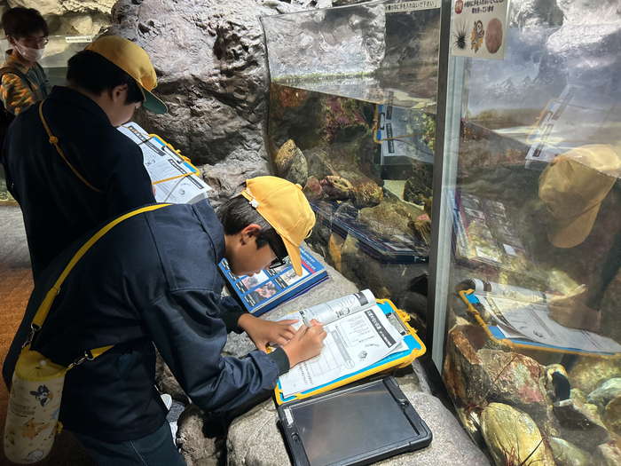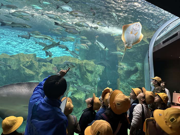 6年生が「海響館で巡る"みすゞが見た海の世界」というテーマで見学をした。これは海響館の企画で、今後修学旅行等で訪問し小中学生対象に「金子みすゞさんの詩」と「海響館の生物」を関連させて学習していくという企画である。ワークシートを使って、今回は3つの詩から生物の生態や特徴を調べていった。下関ならではの学習として行われた。