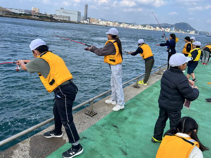 ・内容:巌流島行きの船に乗船(10分)で上陸。令和4年から開始。日本釣振興会山口支部から釣りの講師を招聘して釣り方学習。事前学習を2時間行い、縦割り班で活動や安全確認を行う。帰りに海洋ゴミを拾う活動を行う。準備開始!異学年のふれあい班、12班で活動した。日本釣り振興会や保護者の方に教えていただいた。