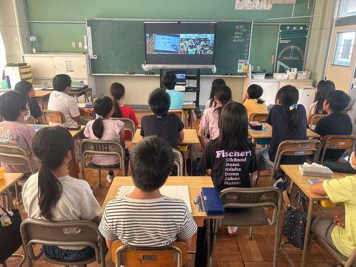 学校では、1~4年生の教室でZoomを使って、進水式のライブ視聴をした。全校で進水式の感動を味わうことができた。
