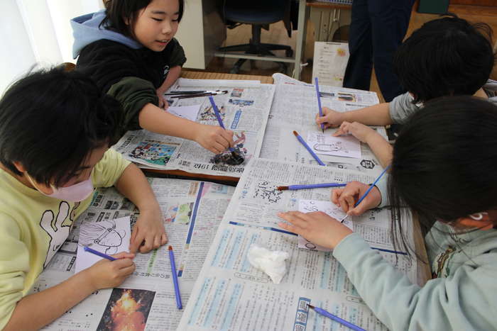 出羽島での探索や千年サンゴについての聞き取り、茶摘み体験等、牟岐町内の海や山の自然、文化にふれながら町の宝物について探求した。また、飼育している磯の魚類等の名前調べとモビール制作を通して身近な生き物に興味を持った。これらの学びを学習発表会で発信した。