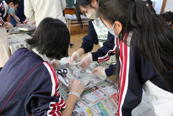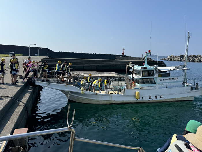 スノーケリングの海洋体験を通して海とレジャーについて考える機会をもった。また、地域の海でとれた食材を使って干物づくり体験やアオリイカの生態についての学習をした。海ついて考える機会を通して、防災学習とも関連させ、牟岐の海と町の未来について学びを深めた。