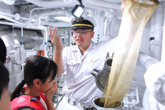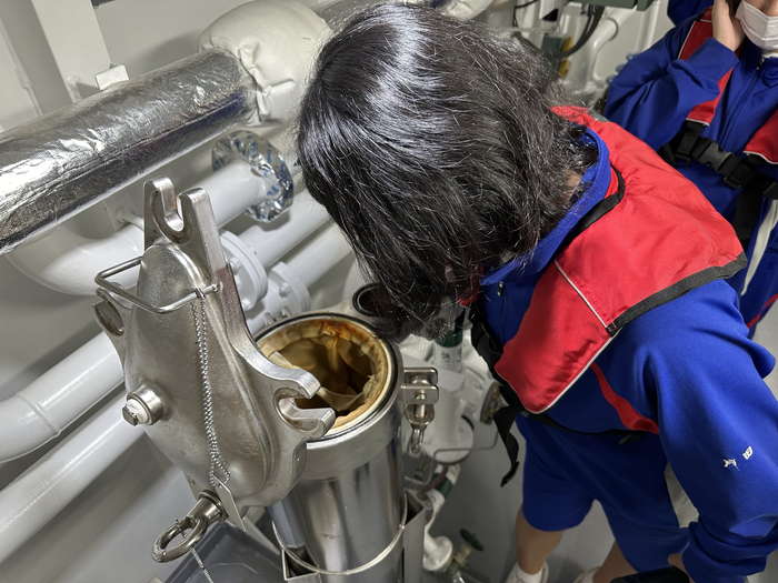 実際に弓削丸に乗船し、操縦体験や船内機器の見学、海洋環境調査を実施。最新機器を活用した学習を通じて、海と船に対する関心を高めた。