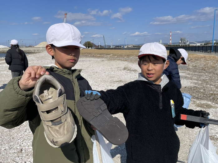 社会科の学習で、ごみの問題について学習したことから、校区のごみ問題について疑問を持った。そして、校区のゴミ調査や有明海の環境調査へ行き、海に関係ないごみがたくさん落ちていることを知った。そして、上流に位置する校区の野間川にはゴミが少ないのに対して、支流の諏訪川、有明海と辿るにつれてゴミが増えていくことに気づいた。知った。それらのごみのほとんどは、川を通じて海に流れているということをGTから学んだ。そして、川の環境を守ることが海の環境を守ることになることに気づき、他学年へごみのポイ捨ての禁止を呼びかける発信を考え、ポスターなどを作成して校内に掲示した。