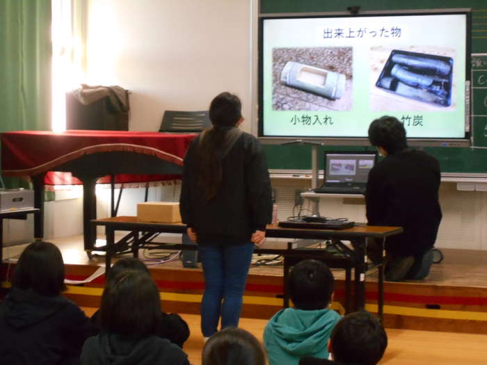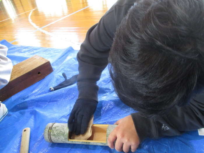 さらに、竹を使ったもの作りを通して、竹の丈夫さや香りの良さ、自然に帰る素材であるなどの良さを実感し、気づいたことを全校児童へ発信した。
