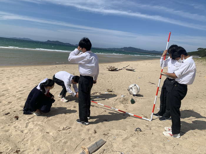 本校理数科2年生9名を主として、1年を通して新宮海岸に関する研究を実施する。本取組は、3年前からの継続研究であり、前年度までのデータを引き継ぐことに加え、新宮海岸の新たなデータを9名が考え記録していき、世界的にも問題となっている海に関する学習を進めていくことを目的としている。