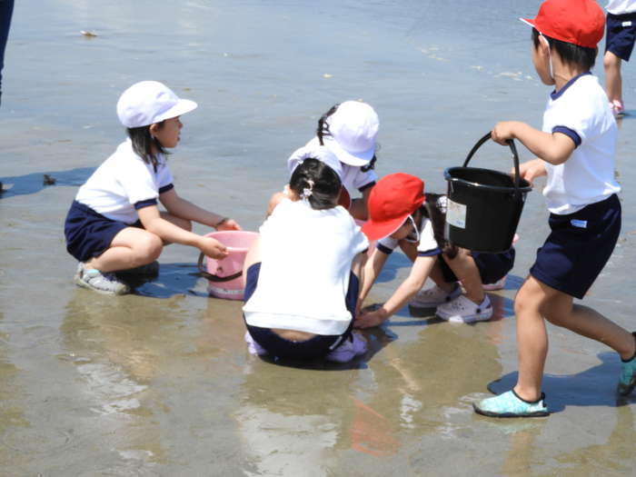 1年生は、生活科の学習で、ひらめの稚魚放流を行った。生まれたての海の命と関わることで、命の大切さについて考えを深めるとともに、これからの自然を大切にしていきたいという考えをもたせることができた。