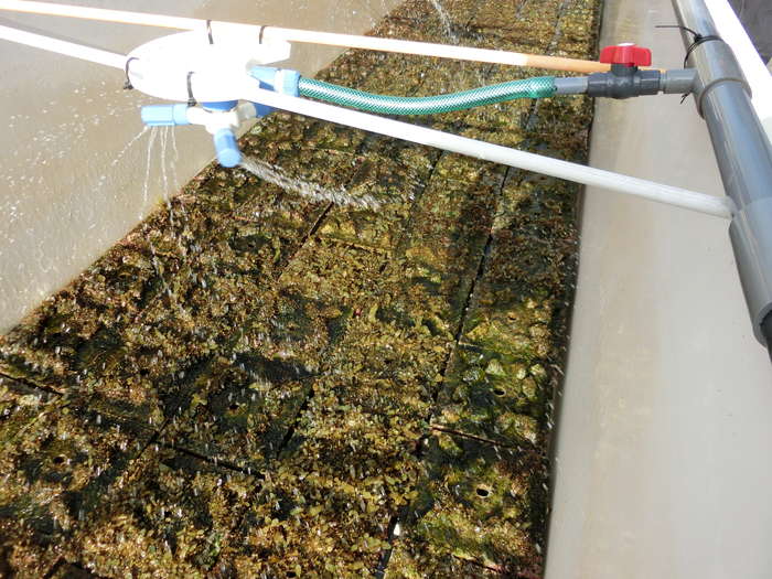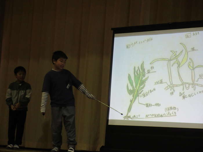 これらの活動を通して、3・4年生なりの知識を得ながら、自分たちでできることを見いだしていた。その中で、田山久倫さんが取り組んでいるリーフボールを設置し、海藻を育てる活動に視点を向けさせ、自分たちで、できる事として、教室の水槽内での海藻の飼育を始めた。将来的には、ここで育てた海藻を地元の海に植え替える活動をしていきたいという実践意欲が生まれた。