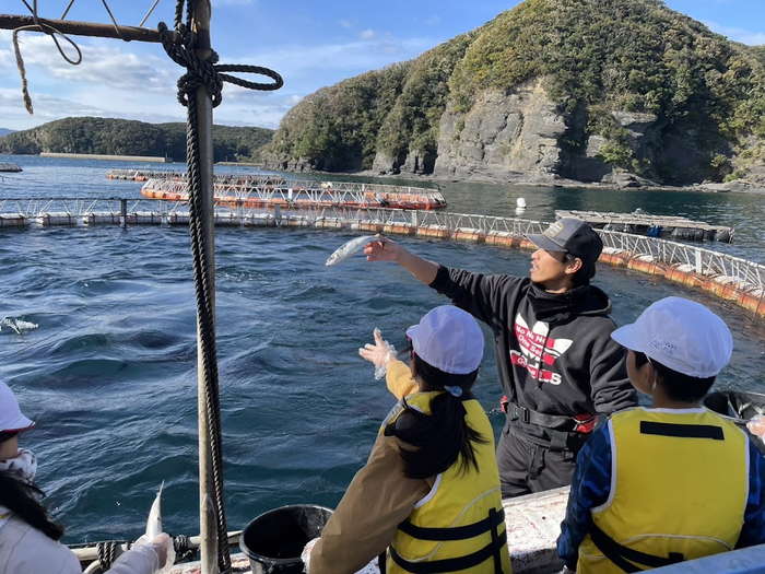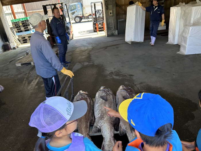 3・4年の社会科では、対馬市や長崎県の水産業を学ぶため、11月に本市の中央部の丸徳水産の体験ツアーに参加したり、12月に北部のジャパンシーフーズ対馬工場を訪問し、加工や販売の様子を見学したりすることができた。魚価を高めるために畜養している生け簀に行き、ブリやサバ、クロマグロへの餌やり体験を行った。ジャパンシーフーズでは、多量に水揚げされたサバを加工する様子を見て、対馬の魚が全国で食されていることを理解することができた。