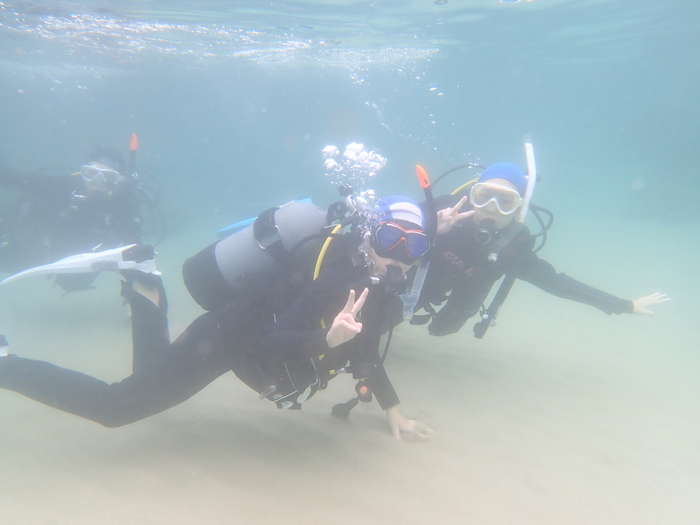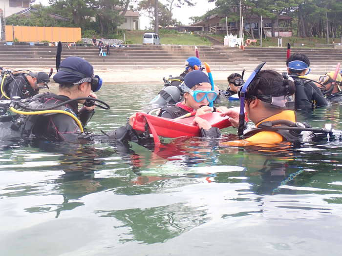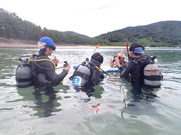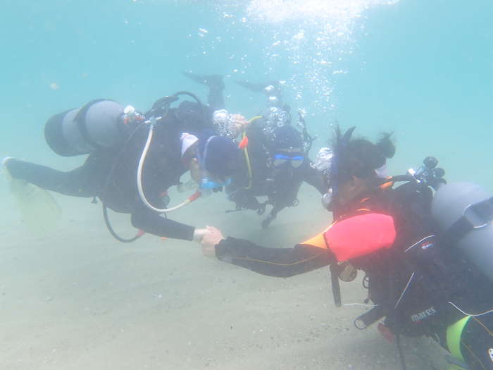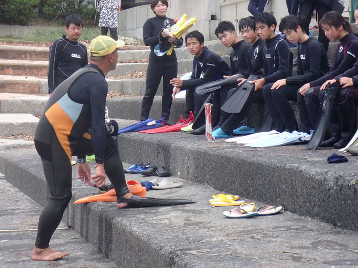 (4)総合的な学習の時間でのマリンアクティビティ(ダイビング体験)を通して、海中の様子を知り、海の未来について考える。(写真(6))