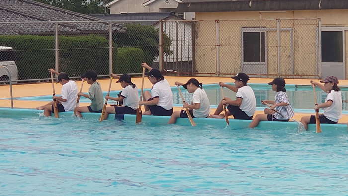 本校では、毎年7月に開催されている地元のペーロン大会に、4年生以上を対象に学校で出場している。