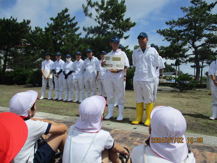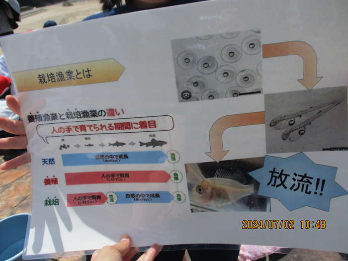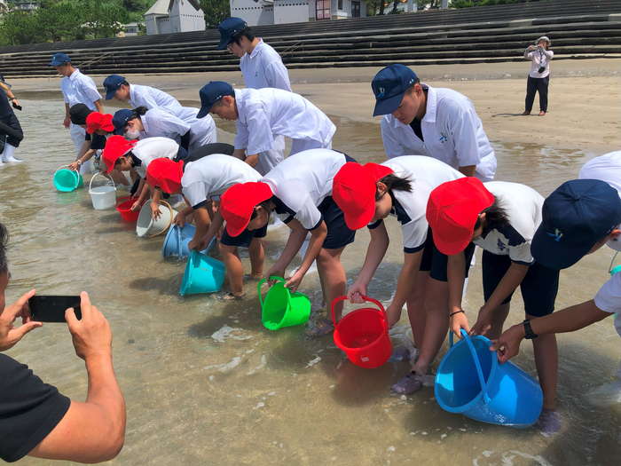 近隣には県内唯一の水産系の高校がある。また、近隣には漁業協同組合もある。それぞれが違う立場で行っている、水産資源を守る稚魚放流の活動を体験することを通して、水産資源を守ろうとする実践意欲を高める。