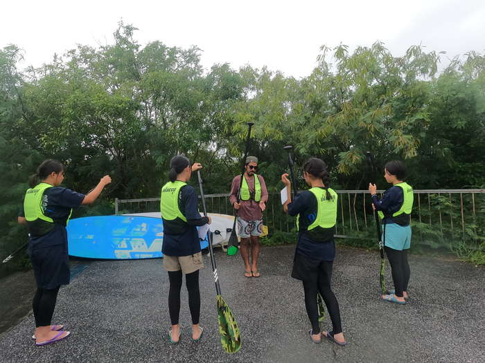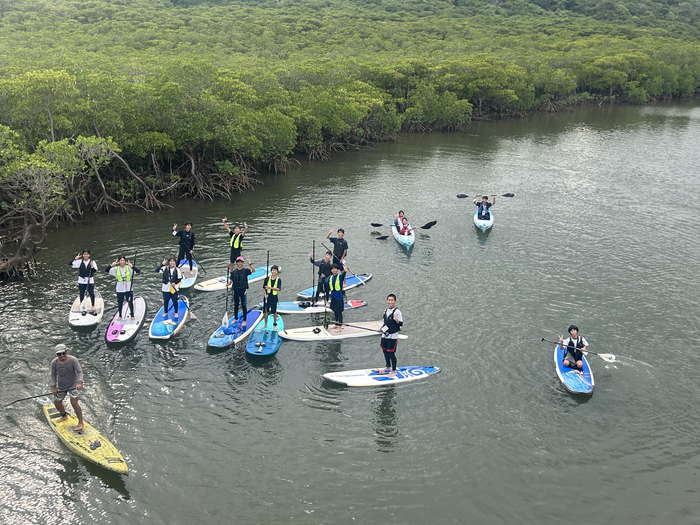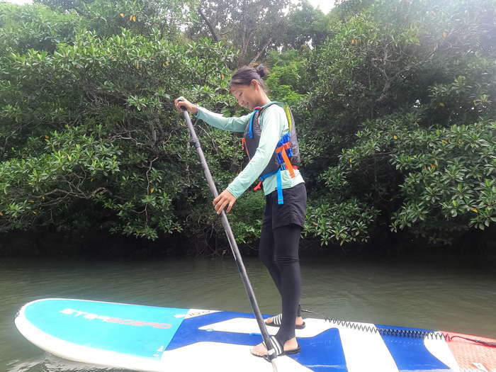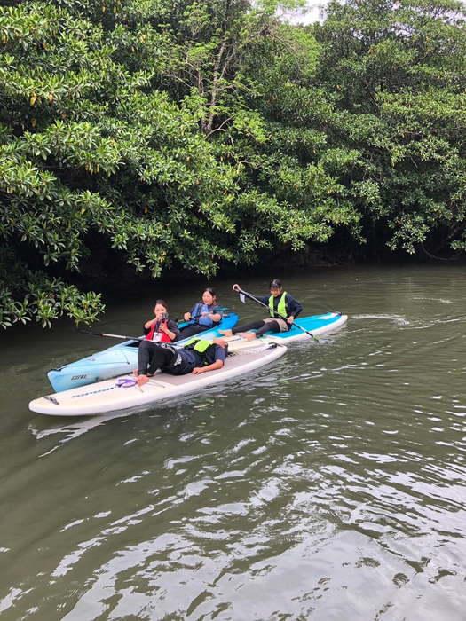 実際に西表島東部のシイラ川のマングローブを観察しながら体験SUPを行った。豊かな自然に触れ、住んでいる生物や海洋ゴミについて意識しながら活動することができた。