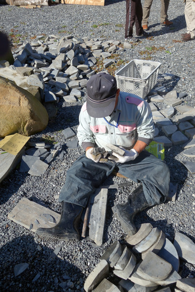 21軒中17軒が被災、移転した雄勝の波板地区では地区会長の鈴木紀雄さんを取材しました。波板は白砂の美しい海岸で、夏には多くの海水浴客でにぎわったという。しかし今は鈴木さんの家だけを残してすべて津波に流されてしまったという。幸いにして難を逃れた鈴木さんの家も瓦礫に埋もれ、途方に暮れていたところ、ボランティアたちの力できれいに瓦礫を片付けることができたという。また硯の産地として有名な雄勝では硯石の注文もあり、いまは元住民たちで一生懸命硯石の加工の仕事をしているという。章氏はたくましい鈴木さんたちに静かに感動しているようでした。