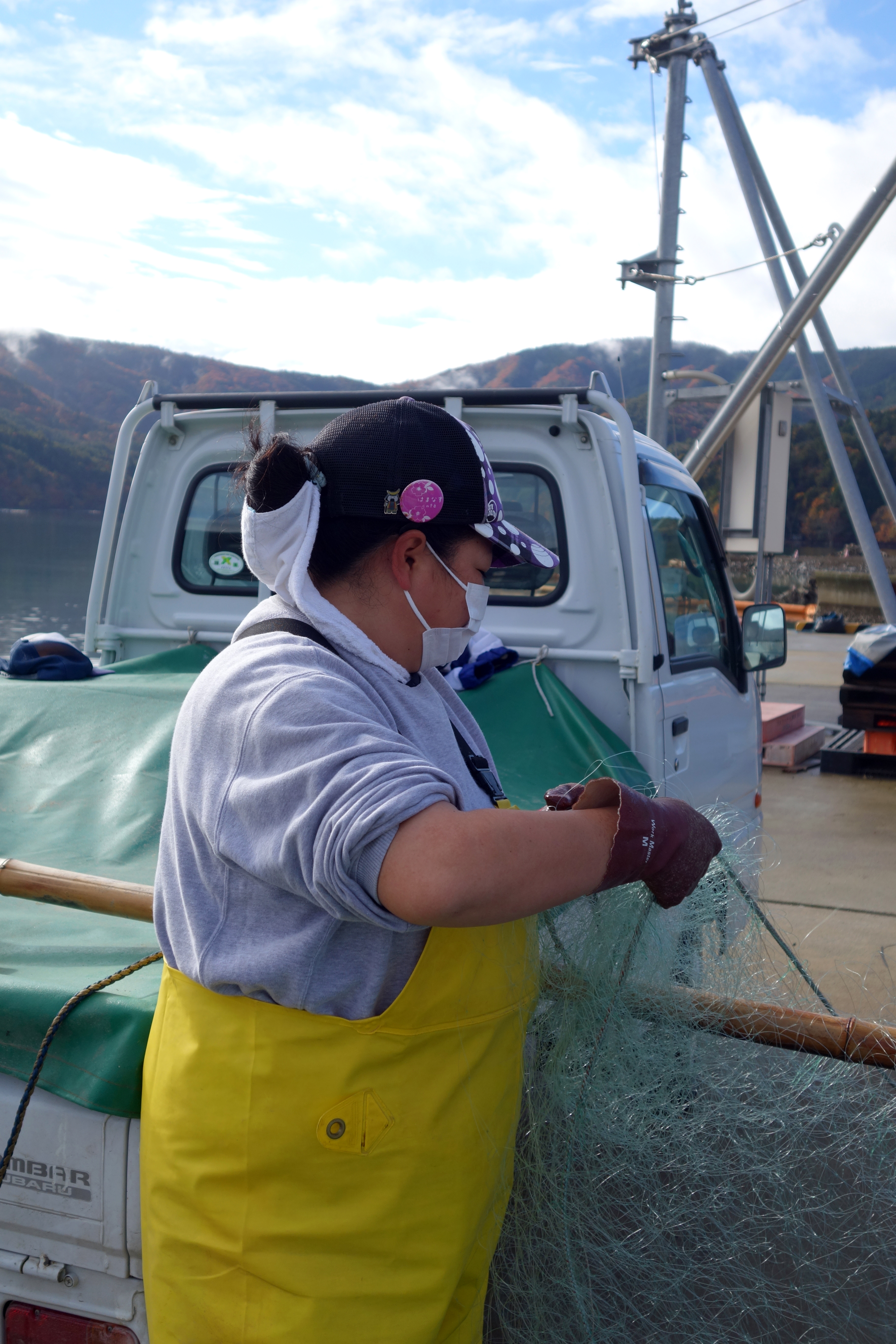 大川小学校から長面浦へ移動。そこに居合わせた牡蠣漁師の小川さんを取材。ちょうど漁網を片付けているところでしたが、快く取材に応じてくれました。震災後、長面浦も壊滅的被害を受け、しかも浦の中には瓦礫がたくさんあり、とても漁を再開することはできなかったという。自治体の援助でがれき撤去の仕事に携わったが、浦がきれいになると、がれき撤去の仕事はなくなり、漁もすぐには再開できず、苦しい生活を送ることを余儀なくされたという。まだまだ漁再開に向けてがんばるという小川さんに章氏は「まるで彼女の澄んだ瞳は長面浦の海のようだ」とこぼしていた。