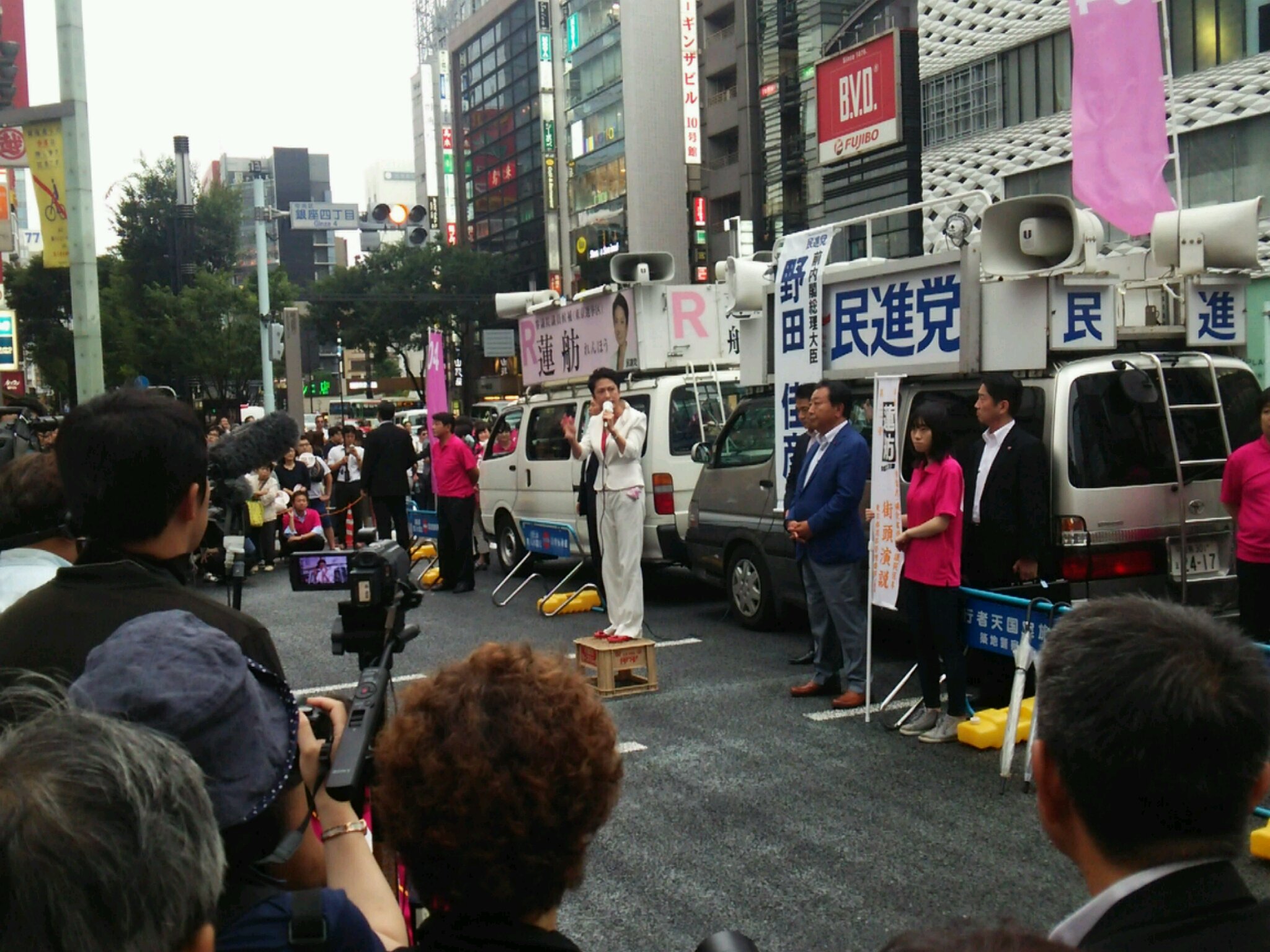 7月9日は蓮舫民進党候補の演説会や中川まさはる自民党候補の演説会を見学しました。演説の熱気にあてられた記者の皆さんは、それぞれ演説内容を聞いて「蓮舫さんの財政政策の話はもっともじゃないか?」など、熱心に意見交換をしていました。銀座では清家あい港区議にも選挙戦の模様についてインタビューしました。