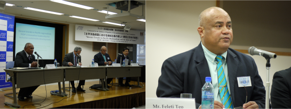 For this seminar, the Interim Secretary General Mr. Feleti Teo of the Pacific Islands Development Forum (PIDF) was invited, and this was the first visit to Japan by high ranking official from this newly established regional body. The seminar received contribution of seven prominent speakers including Professor Michael O'Keefe of La Trobe University, Australia and Professor Izumi Kobayashi, President of Japan Pacific Islands Association along with some of the Pacific Island nations' ambassadors to Japan based in Tokyo. Discussions were held on recent dynamic evolution of regional cooperation in the Pacific island countries as well as the outlook and implications of recent development.